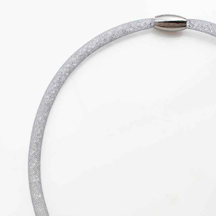 オーバルシェイプジェムストーンメッシュコードネックレス