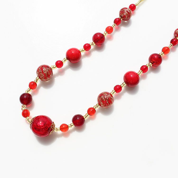 ベネチアンガラスオロロットローズモチーフショートネックレス