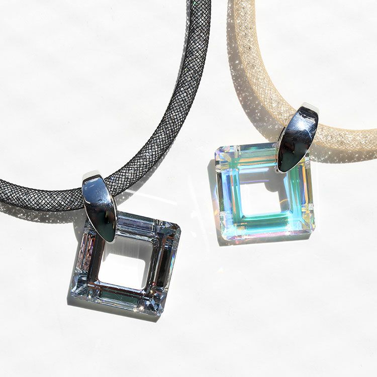 クリスタルガラススクエアモチーフネックレス/1240101-