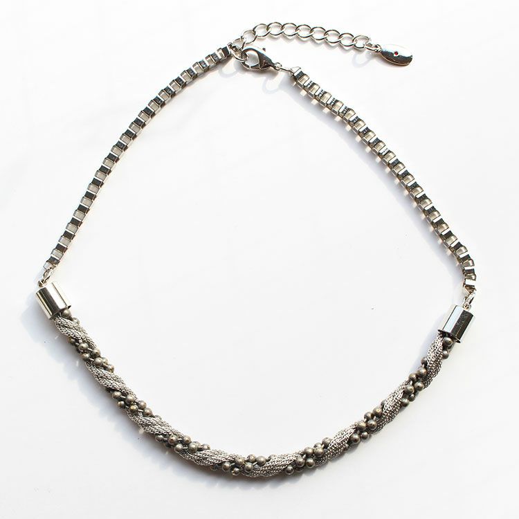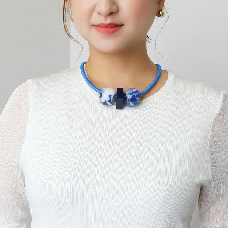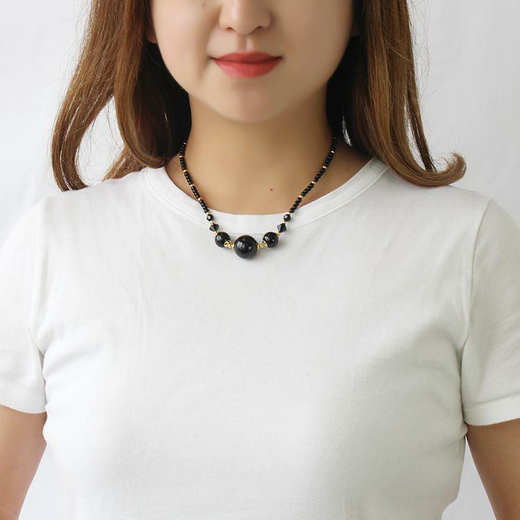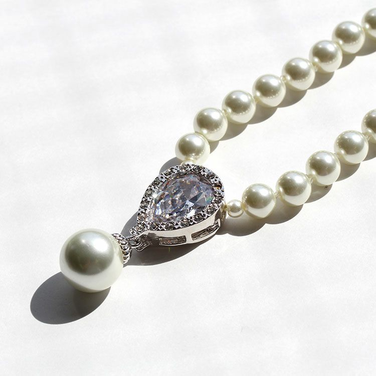 ガラスパール×キュービックジルコニアショートネックレス/1171118-