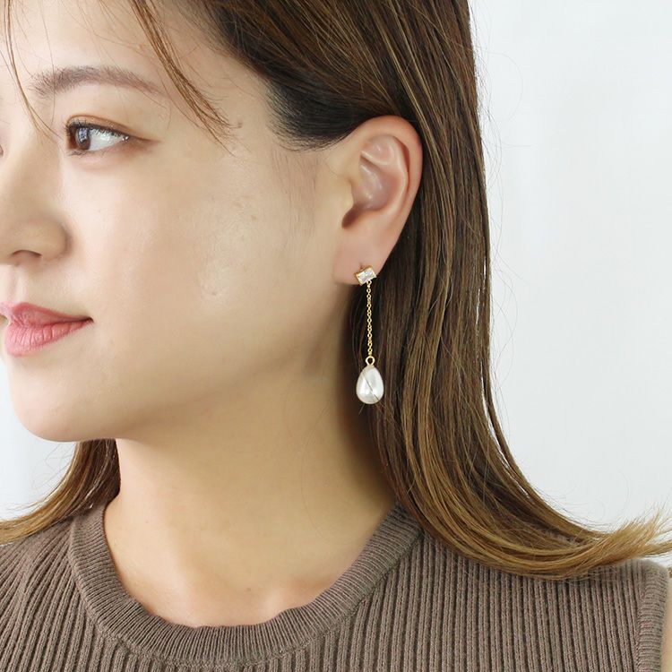 アシンメトリードロップパールピアス