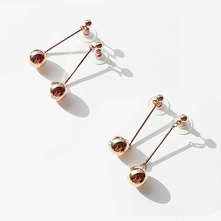 耳元で揺れ動くロングピアスはお顔周りを華やかにしてくれます。 カジュアルなメタルボールはデイリー使いぴったり。