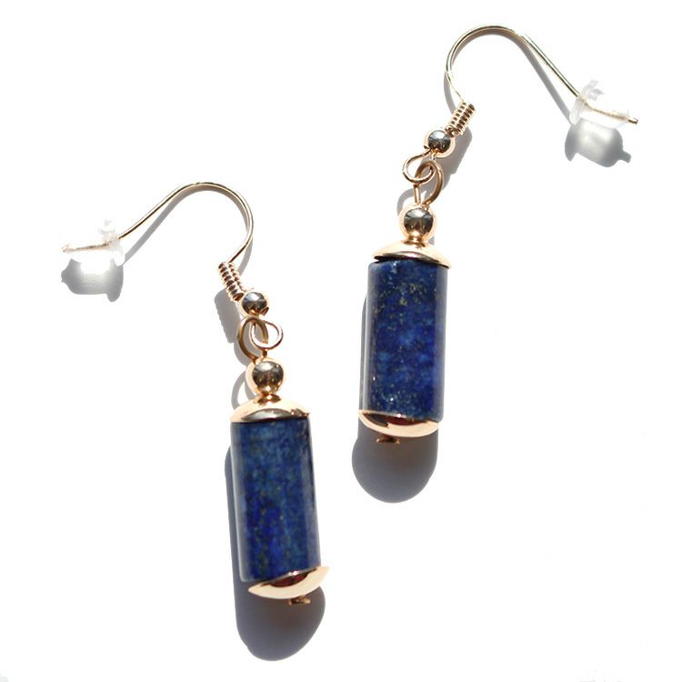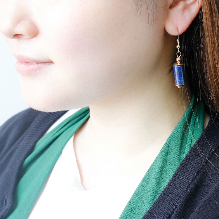 天然石のラピスラズリを使用した細長いシルエットが魅力的なピアス。