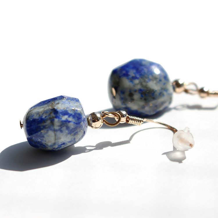 天然石のラピスラズリを使用した多面カットが魅力的なピアス。