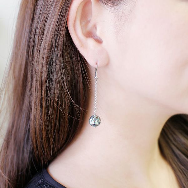 高品質の小さなシェルを1つずつハンドメイドでモザイク状に貼り付けたピアス。美しく輝くシェルを隙間なく丁寧に貼り付けた、職人の繊細な技術力で実現した高級感のある一品です。