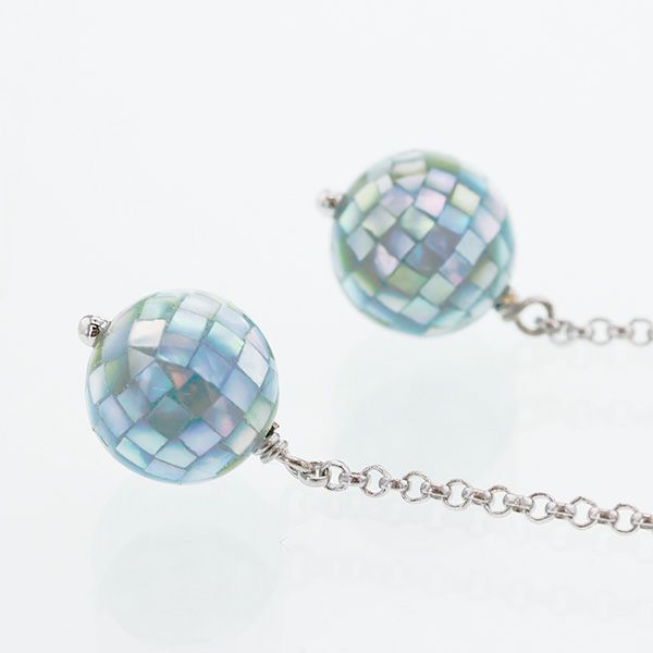 高品質の小さなシェルを1つずつハンドメイドでモザイク状に貼り付けたピアス。美しく輝くシェルを隙間なく丁寧に貼り付けた、職人の繊細な技術力で実現した高級感のある一品です。
