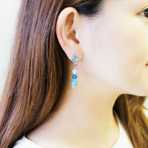 ブルー系のビーズでまとめた爽やかなピアス。 クリスタルガラスの上品なきらめきが耳元を華やかに飾ります。