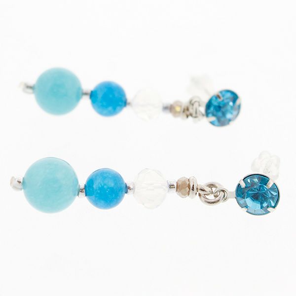 ブルー系のビーズでまとめた爽やかなピアス。 クリスタルガラスの上品なきらめきが耳元を華やかに飾ります。