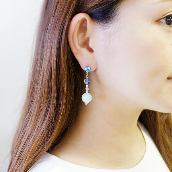 ブルー系のビーズでまとめた爽やかなピアス。