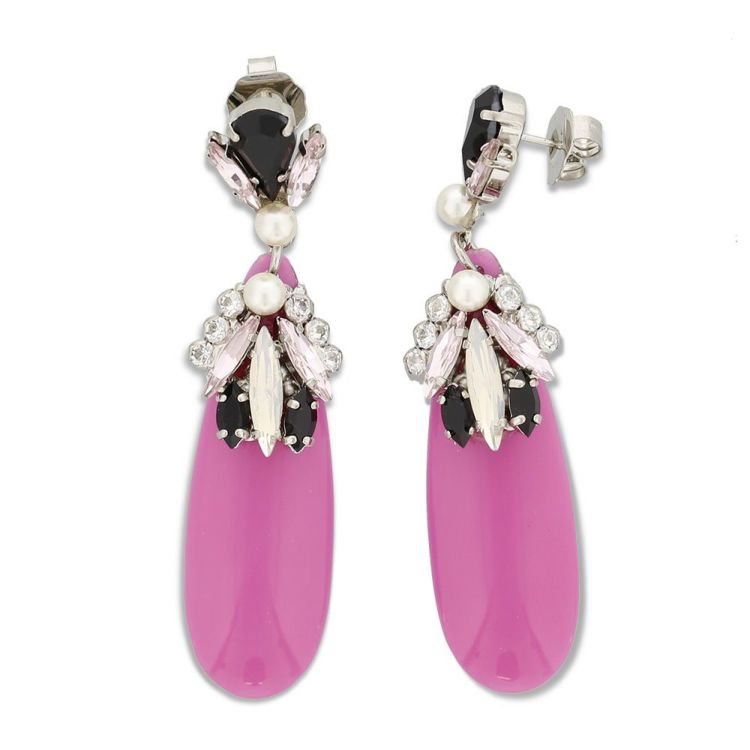 ティアドロップ型のパーツに大粒のクリスタルガラスをあしらったビジューピアス。