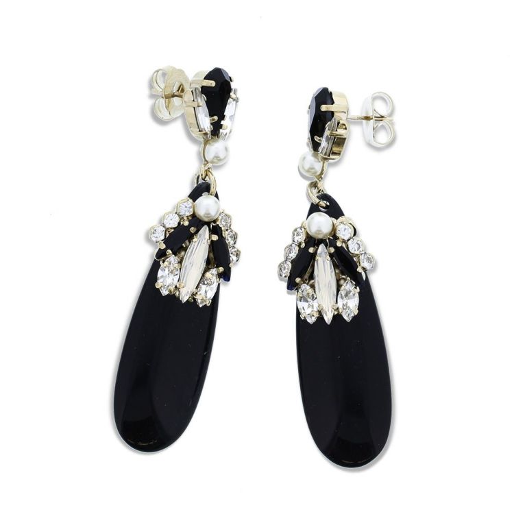 ティアドロップ型のパーツに大粒のクリスタルガラスをあしらったビジューピアス。