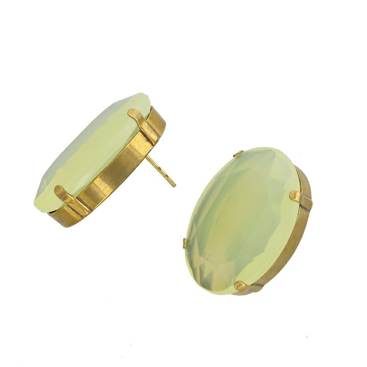 ペールトーンの大ぶりなアクリルビジューがきらめくピアス。