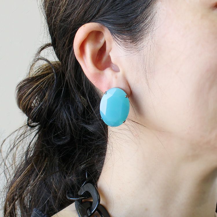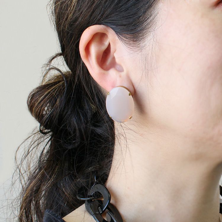 ペールトーンの大ぶりなアクリルビジューがきらめくピアス。