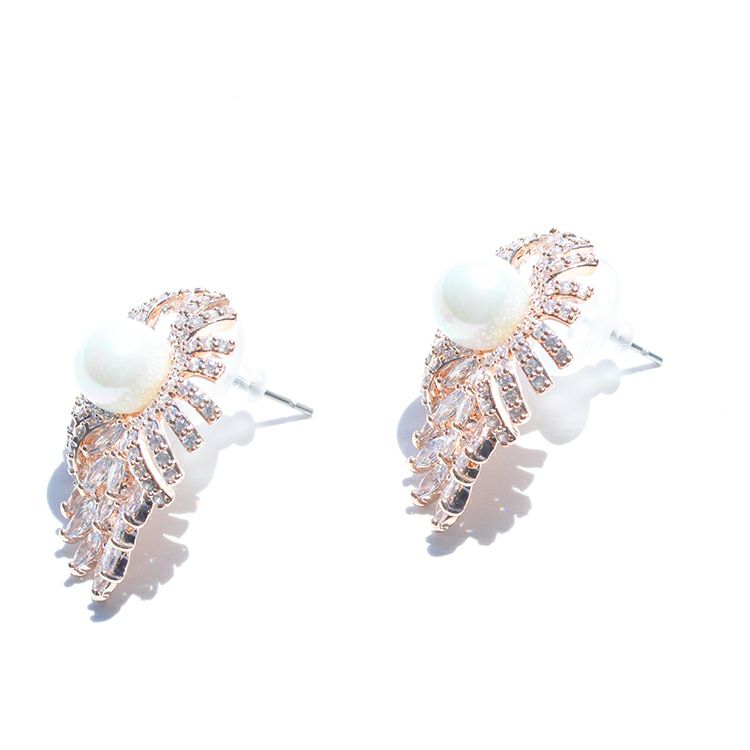 ガラスパールを囲むリーフのようなデザインのキュービックジルコニアピアス。エレガントな華やかさで大人可愛く仕上げてくれます。