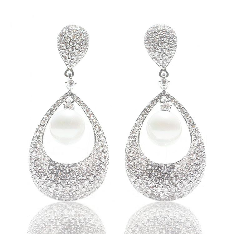 キュービックジルコニアドロップモチーフパールピアス/3190051