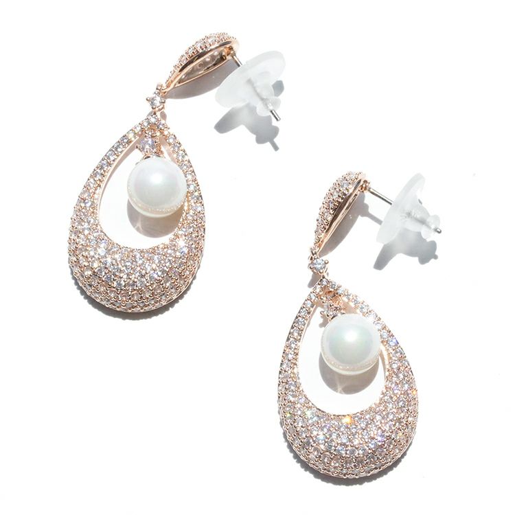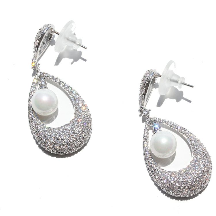 キュービックジルコニアドロップモチーフパールピアス/3190051