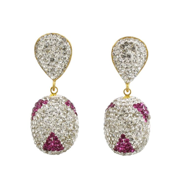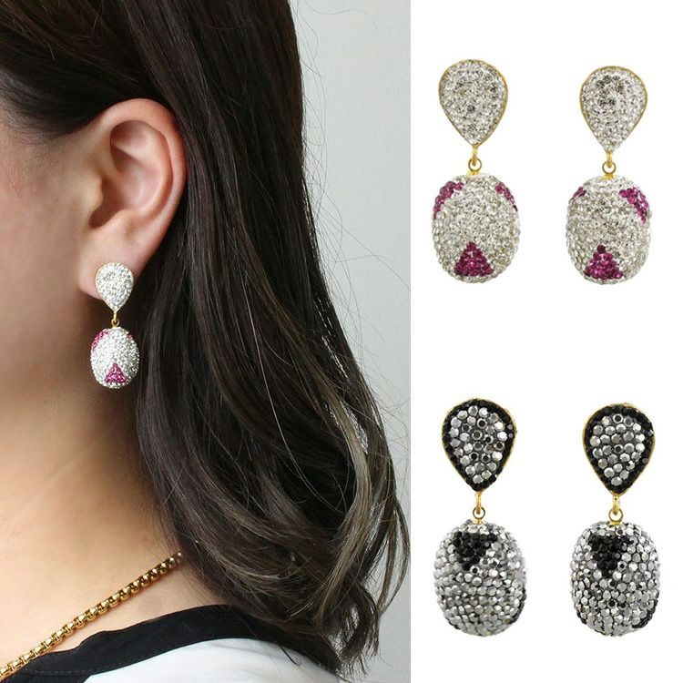 クリスタルガラスがたっぷりとあしらわれ、動くたび、光がわずかに当たるたびにキラキラと煌めくピアス。