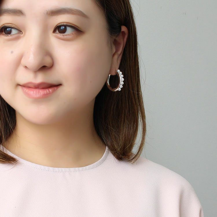 小さなパール連なるパールフープピアス。エレガントにもカジュアルにもご利用いただけます。