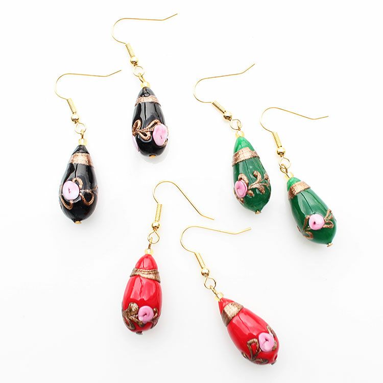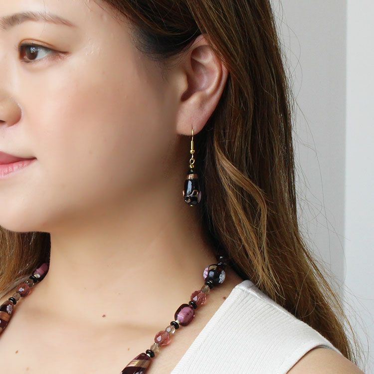 ベネチアンガラスフィオラートビーズピアス