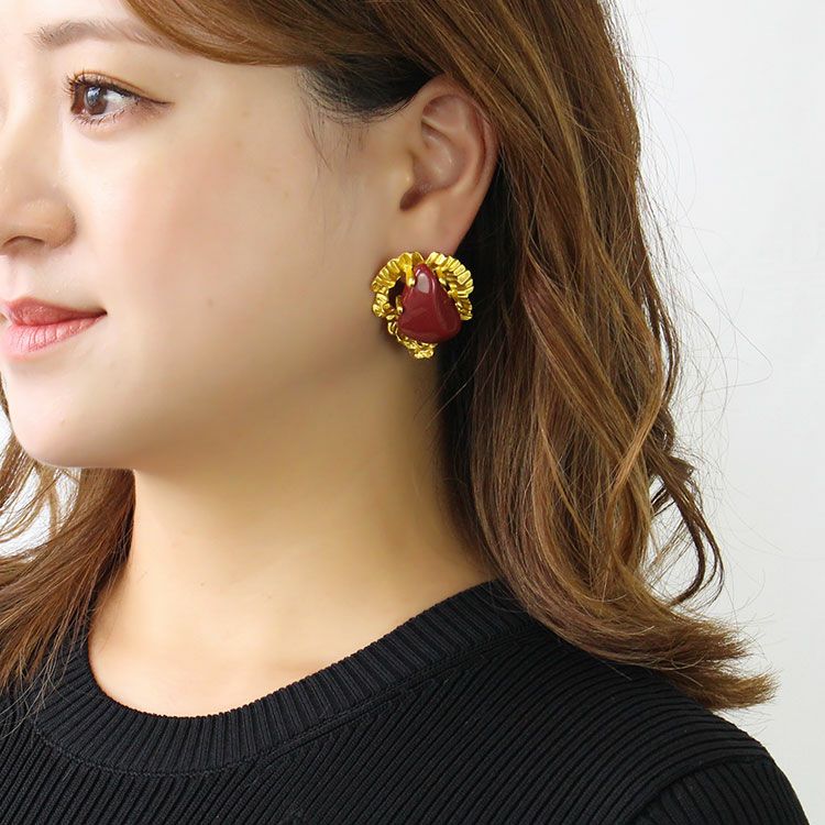 アンティークな配色が魅力のデザインピアス。遊びゴコロあふれる大ぶりのデザインはコスチュームジュエリーならでは。パーティーシーンや会食、外出時はもちろん、普段使いのコーディネートのアクセントにご利用いただけます。