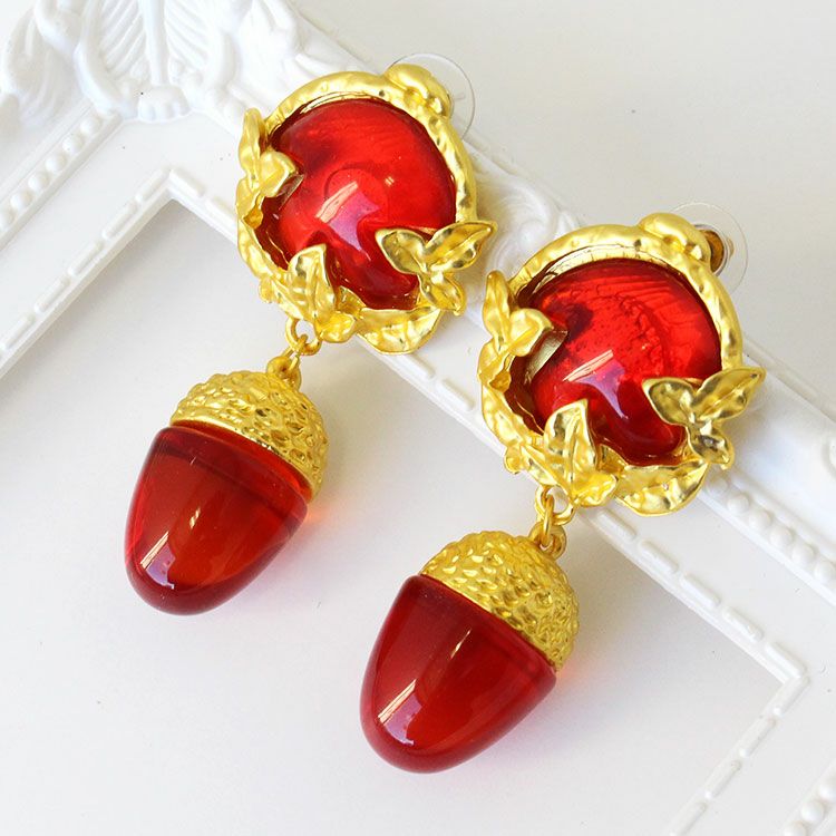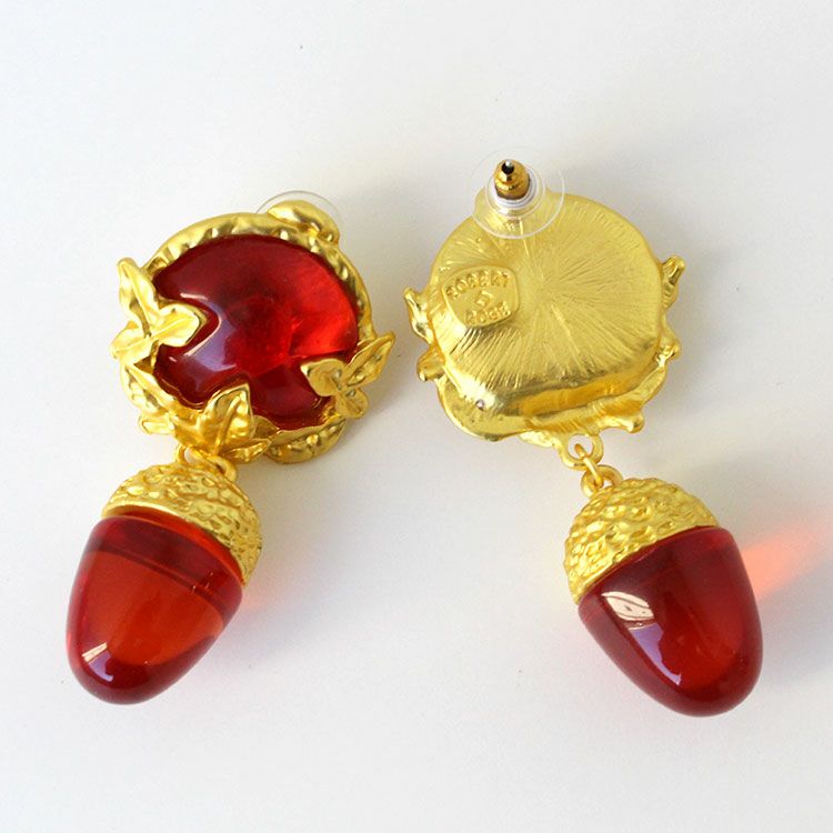ドングリのようなモチーフが印象的なアンティーク調デザインロングピアス。遊びゴコロあふれる大ぶりのデザインはコスチュームジュエリーならでは。パーティーシーンや会食、外出時はもちろん、普段使いに、コーディネートのアクセントにご利用ください。