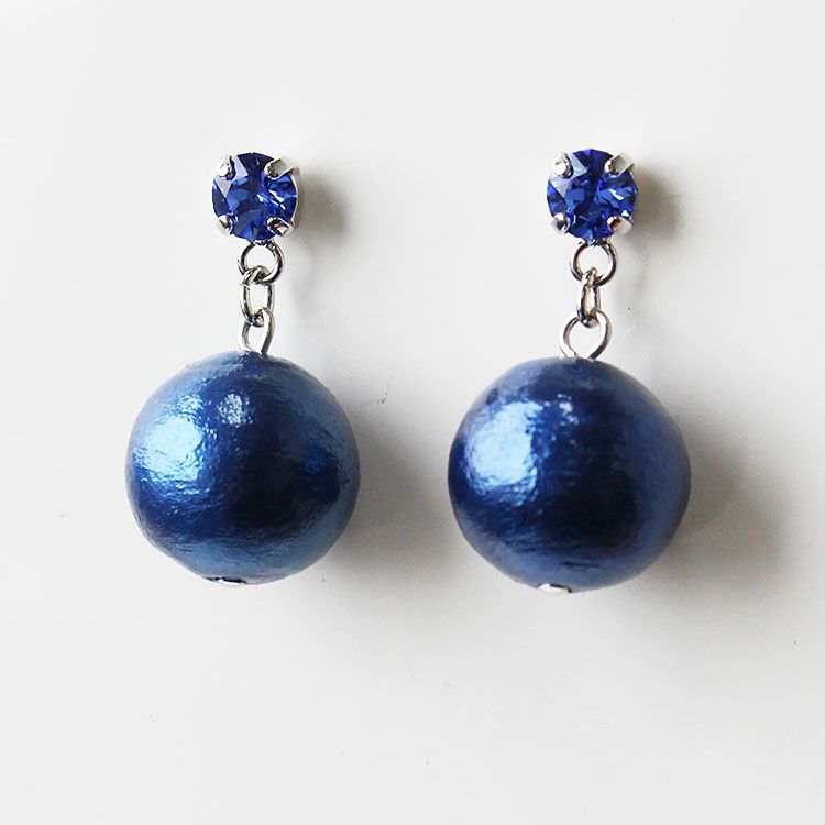 綿を圧縮して形成し、その上からパール塗装を施して作られるコットンパールは、繊維による細かい凹凸が特徴で、温かみのある質感を醸し出しています。驚くほどの軽さと、ひとつ一つが真円ではなく、少し歪んだ形状をしていることも、ナチュラルな魅力となっています。