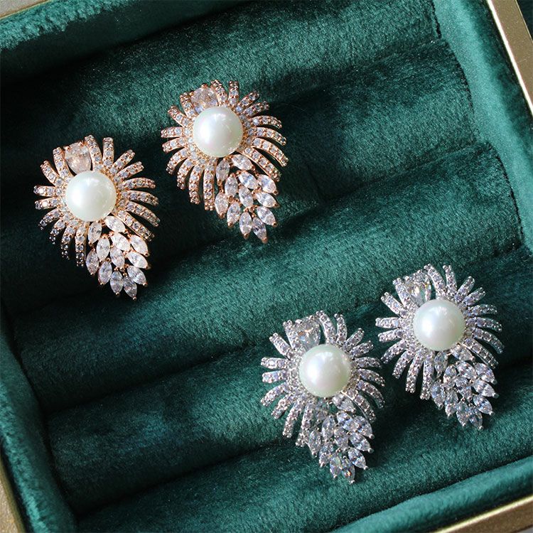 キュービックジルコニア×パールキャッチ2wayピアス