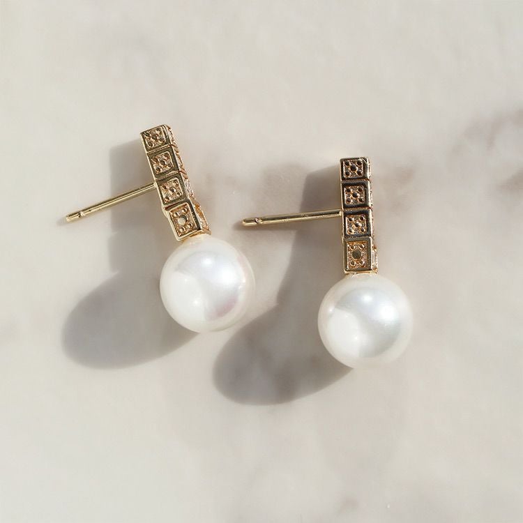 マジョルカバロックパール×18Kメッキチェーンロングピアス