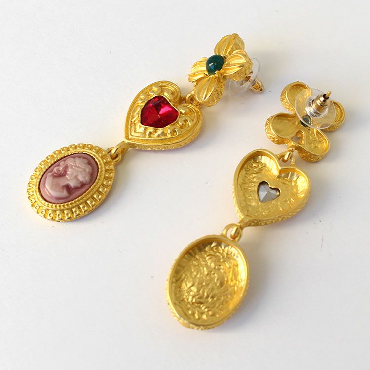 アンティーク調カメオデザインロングピアス