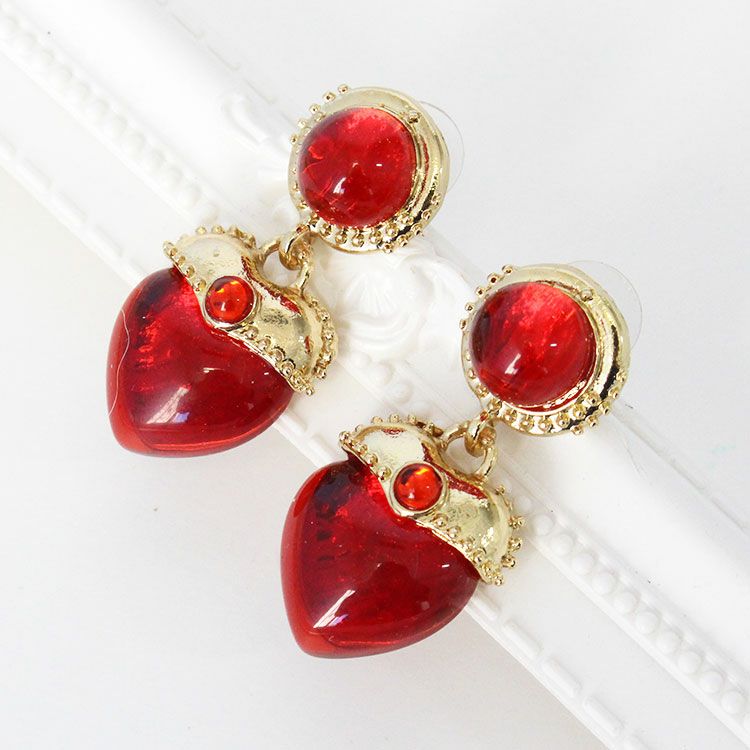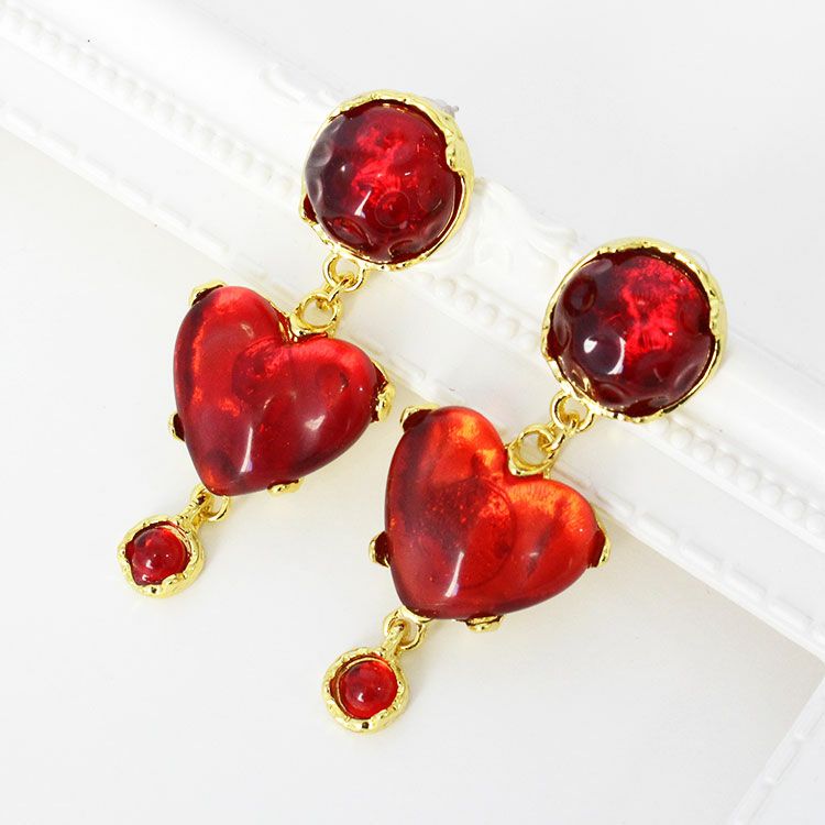 アンティーク調ハートデザインロングピアス