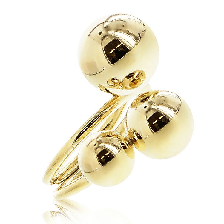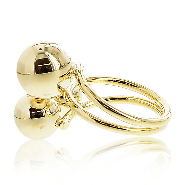 大きさの異なる3つのメタルボールが細身のリングライン上に配置され、全体の立体感を作り出しています。メタルボウルが無造作に置かれているように見え遊び心を感じさせ、メタル特有の自然な光沢が手元を明るく映し出してくれます。