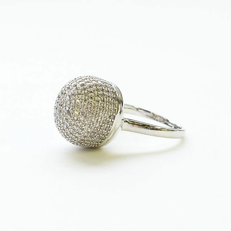 人気のキュービックジルコニアボールリング。トップのボール部分にはキュービックジルコニアが繊細にしきつめられています。
