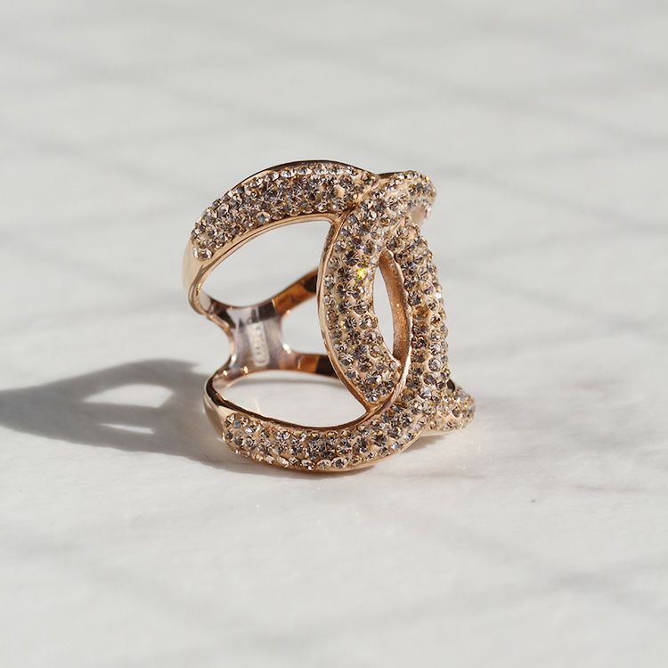 チェコクリスタルの緩やかなウエーブが交わり、結ばれた様な立体的でスタイリッシュなデザインのクロスリング。