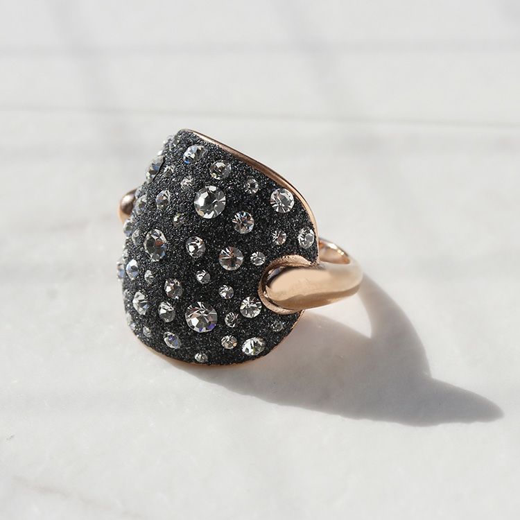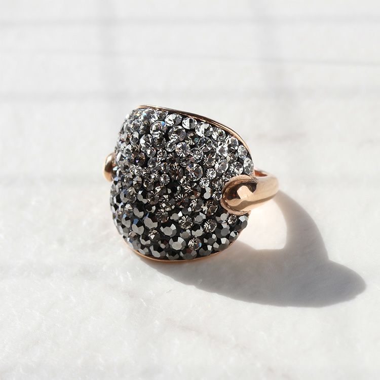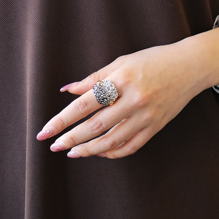 たっぷりとあしらわれたクリスタルガラスが星屑のように煌めくリング。
