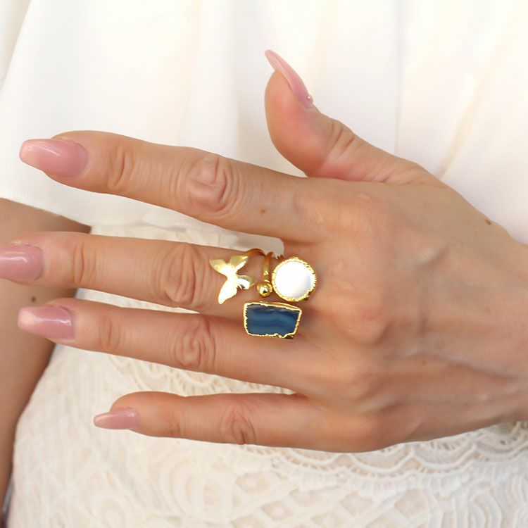 バタフライモチーフアゲートリング/6230008-6230009