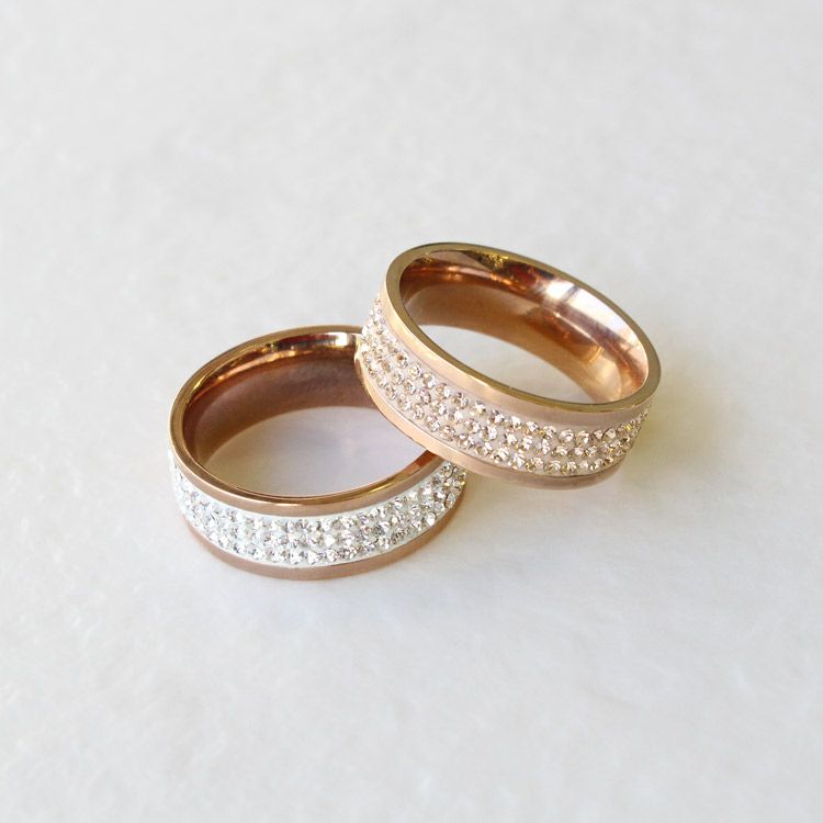 リングの表面の溝にチェコクリスタルガラスがパヴェ状にあしらわれたハーフエタニティリング。