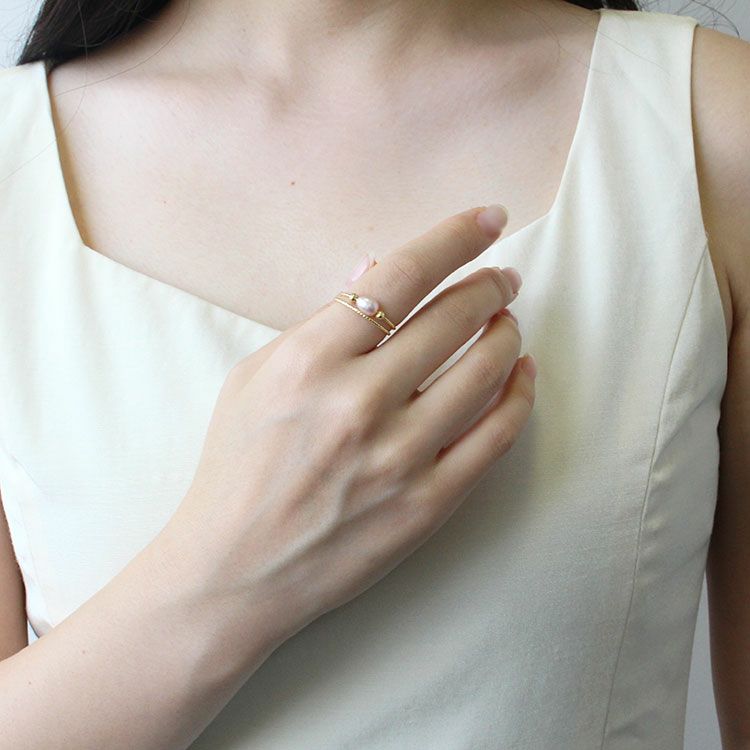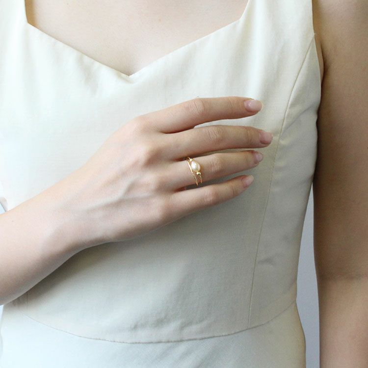 ダブルリングが洗練された印象の淡水パールダブルリング。楕円型の淡水パールがキュートでエレガントな雰囲気を演出しています。パーティーからデイリーまで幅広くご利用いただけます。