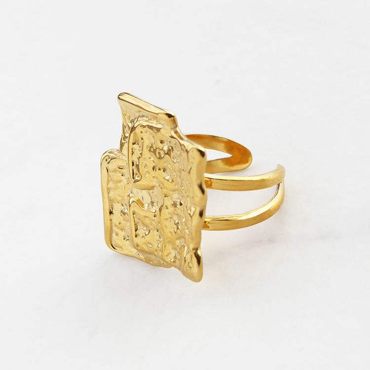 他につけるアクセサリーともコーディネートしやすいシンプルなゴールドの地金調デザインながら、1点つけるだけで華やぎがうまれる大ぶりサイズ。アーム部分が細いので普段大ぶりリングを着けない方やむくみやすい方にも違和感なく着けられます。