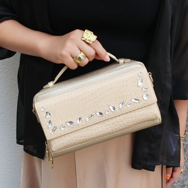 【軽量】ナイロン×レザー2Wayビジューバッグ/8241011-