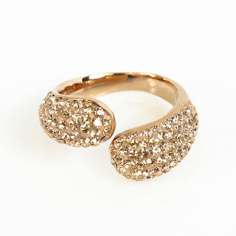 正面に小さなビジューをパヴェ状に敷き詰めたハーフエタニティオープンリング。パッと華やかで女性らしい手元を演出します。
