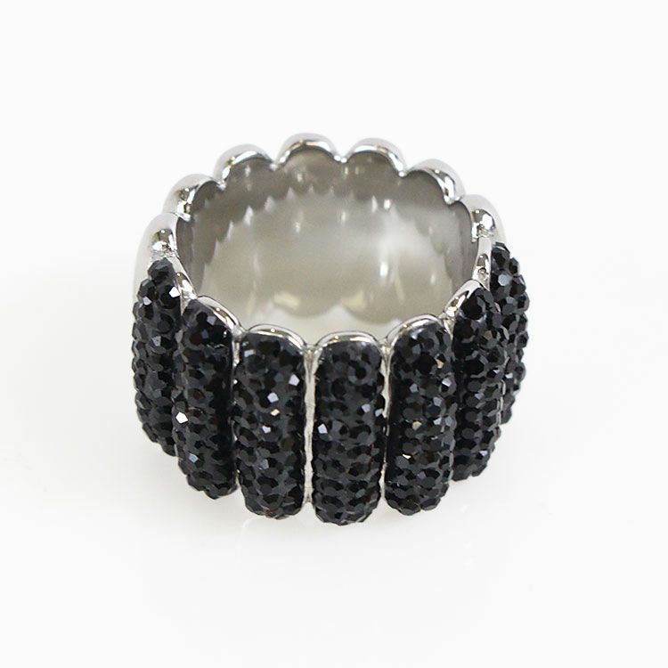 小さなビジューをパヴェ状に敷き詰めたハーフエタニティボリュームリング。キラキラと手元を輝かせる大ぶりで華やかなリングは、存在感抜群。ゴージャスなゴールド(クリア)、大人カッコいいシルバー(ブラック)リングが、いつものコーディネートを格上げしてくれます。
