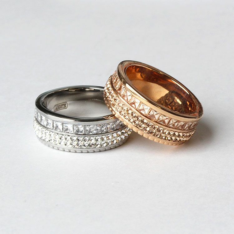 チェコクリスタルがパヴェ状に敷き詰められた上品で繊細なデザインのエタニティリング。引っ掛かりが少なく、手元を美しく華やかに見せてくれます。カジュアルからフォーマルシーンまで幅広くご利用いただけます。