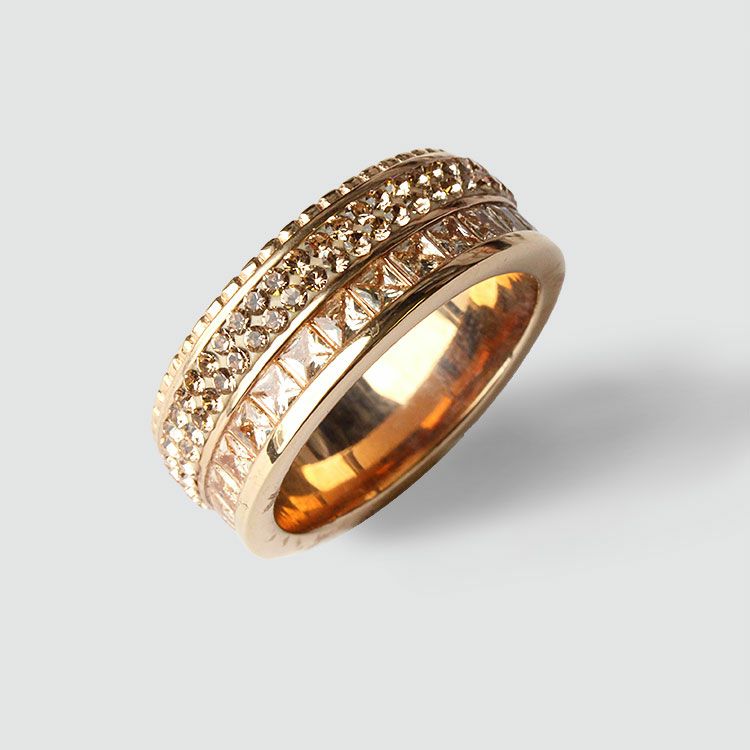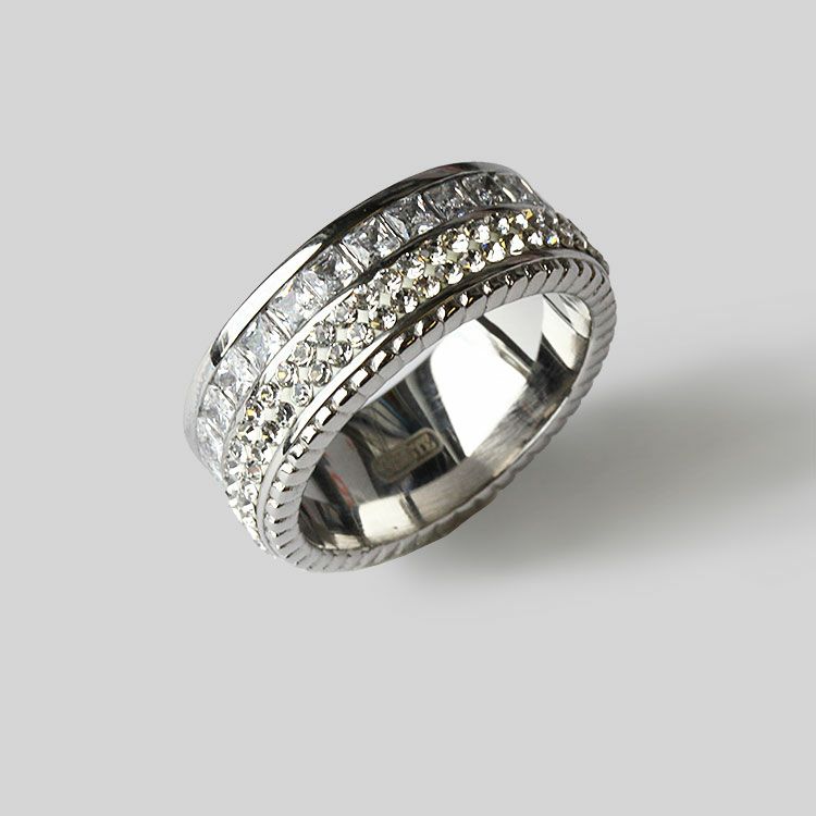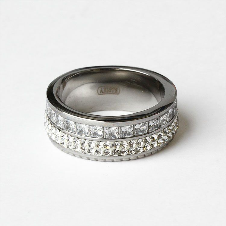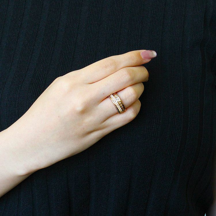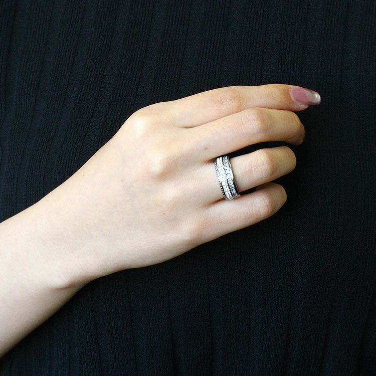 チェコクリスタルがパヴェ状に敷き詰められた上品で繊細なデザインのエタニティリング。引っ掛かりが少なく、手元を美しく華やかに見せてくれます。カジュアルからフォーマルシーンまで幅広くご利用いただけます。