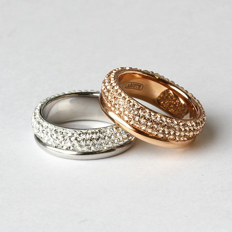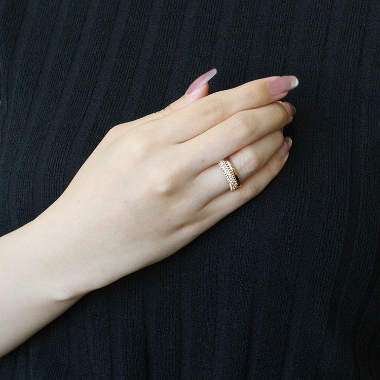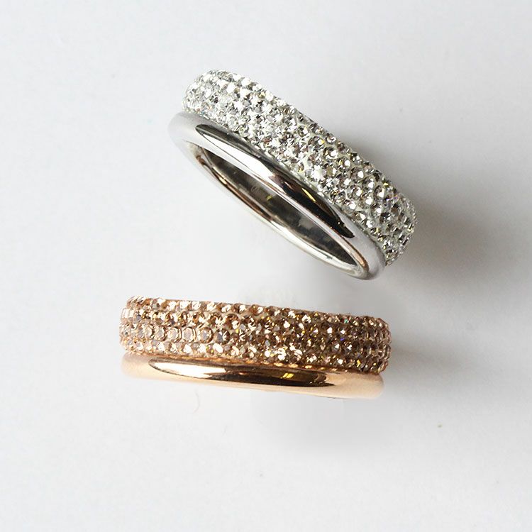 チェコクリスタルがパヴェ状に敷き詰められた上品で繊細なデザインのエタニティリング。引っ掛かりが少なく、手元を美しく華やかに見せてくれます。カジュアルからフォーマルシーンまで幅広くご利用いただけます。