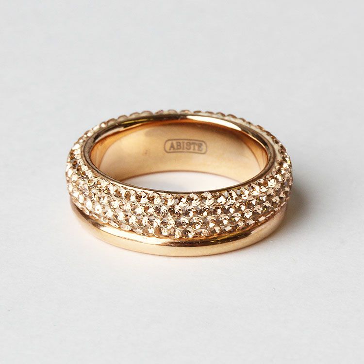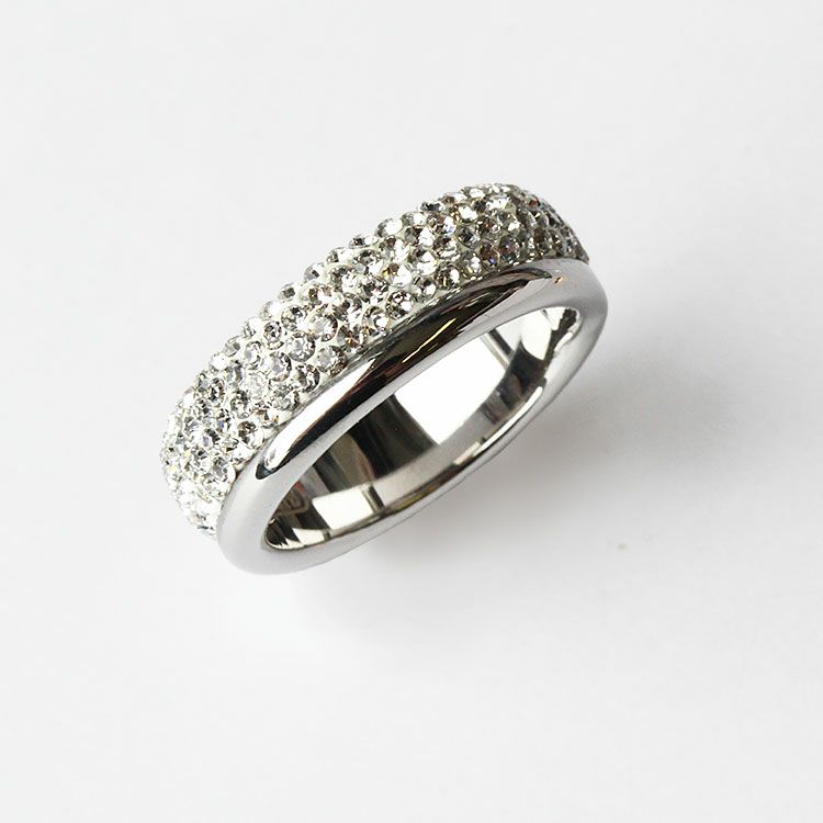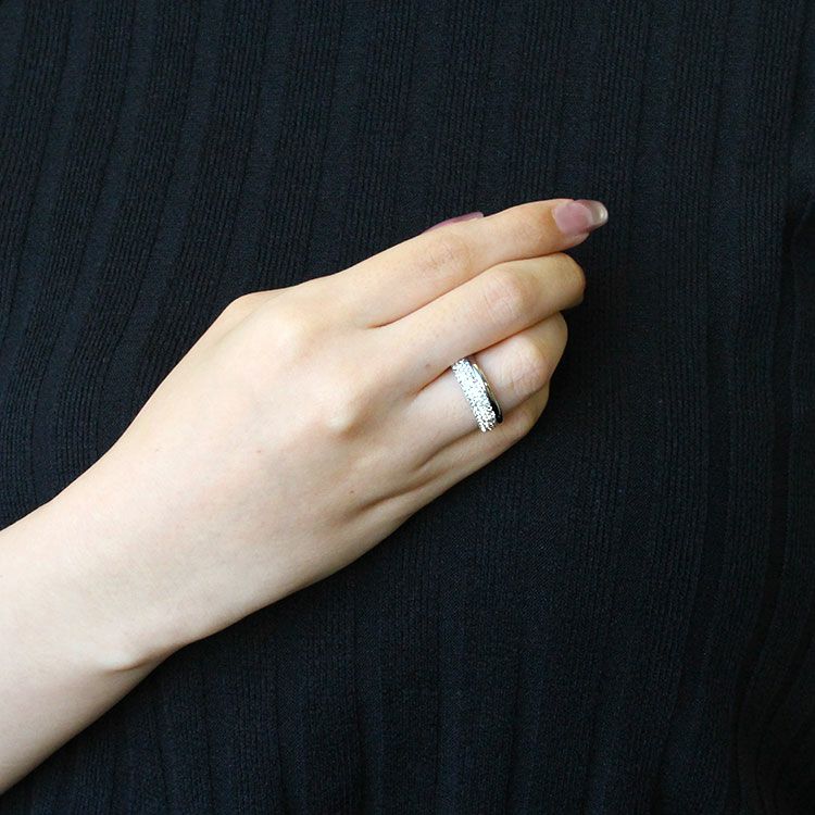 チェコクリスタルがパヴェ状に敷き詰められた上品で繊細なデザインのエタニティリング。引っ掛かりが少なく、手元を美しく華やかに見せてくれます。カジュアルからフォーマルシーンまで幅広くご利用いただけます。
