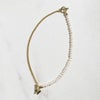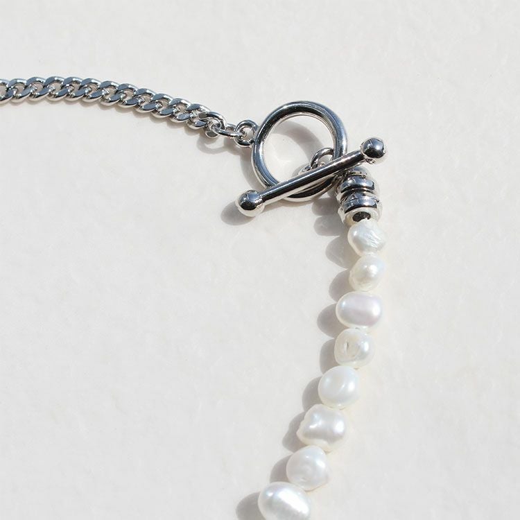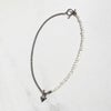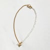 淡水パールとスタイリッシュなメタルチェーンを組み合わせたネックレス。甘すぎないシェイプの大人可愛いハートのマンテルを前にしても、ノーマルなマンテルを前にしても使える2Way仕様です。