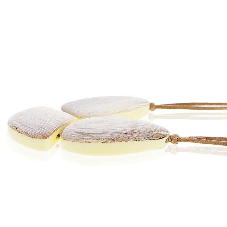 海岸で日の出を待つとき、少しずつ昇ってきた日の光が湿った砂浜を照らし始める、そんな太陽の光線をイメージして作られたコレクション。パーツの中には光を反射してキラキラと光る特別な顔料がサッと塗られていて、控えめながらきらめきが生まれます。