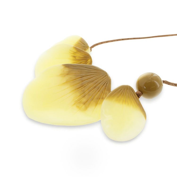 ブルームは繊細な花びらがモチーフ。彫刻をほどこしたかのような薄いパーツは、身に付けると非常に軽く、しかし同時にダイナミックな動きがあります。見方によっては、シェルパーツのようにも見えるため、少しハワイアンな印象にも。抑えた色味のため、秋口まで長くお使いいただけます。
