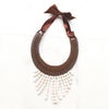 重ね付けをしているような、ビブネックレス。シダ植物を編み上げたチョーカー部分に淡水パールがエレガントなデザイン。リゾートにはもちろん、つけ衿として、カジュアルに普段使いにもご利用いただけます。