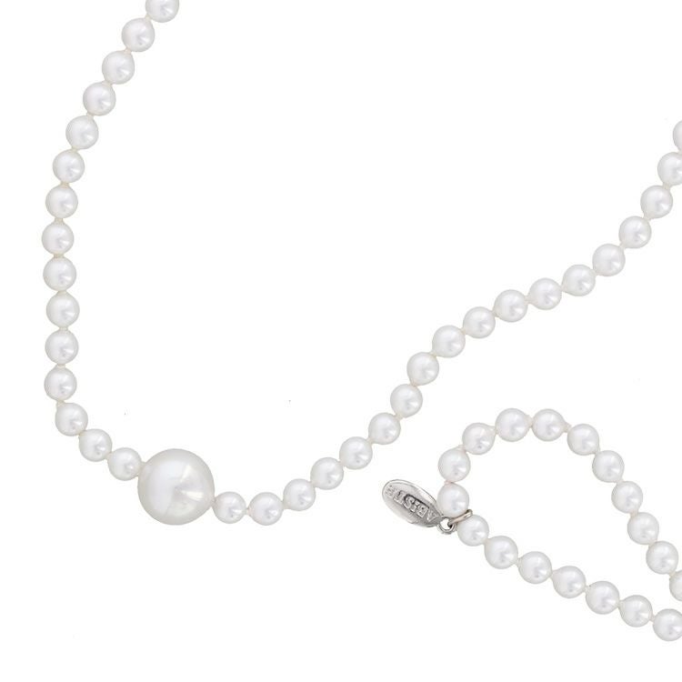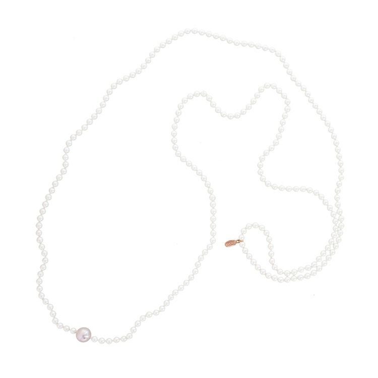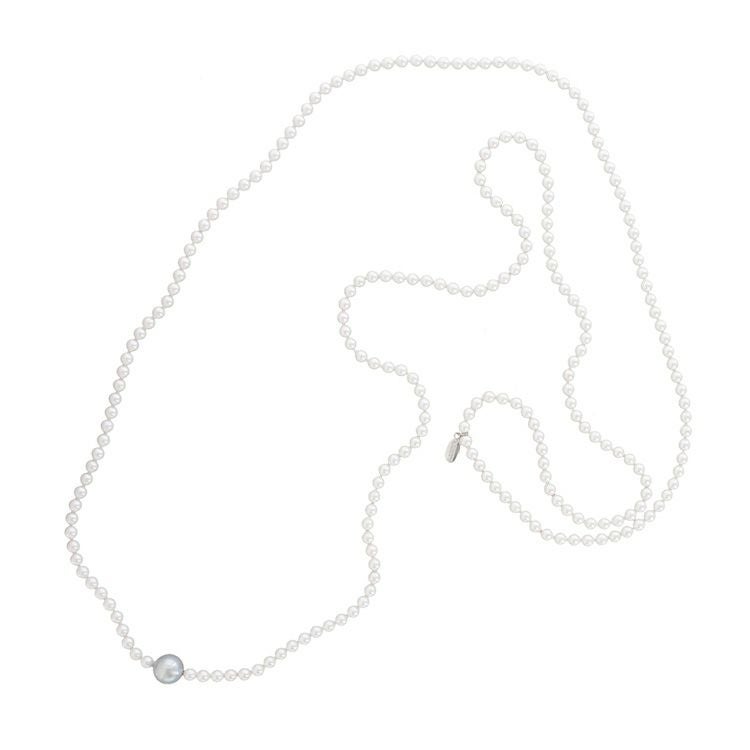 150cmという長さながらも、ピュアホワイトの6mm玉パールをベースとしているため、程よいボリュームと抜け感を両立。2連や3連、結び目を作るアレンジや、他のネックレスやスカーフとの重ねづけもお楽しみいただけます。